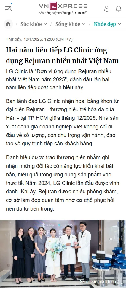 LG Clinic ghi dấu ấn trong lĩnh vực thẩm mỹ công nghệ cao với các giải pháp trẻ hóa da ứng dụng công nghệ tiên tiến, hiện đại hàng đầu thế giới, nhận được sự quan tâm và đánh giá tích cực từ nhiều cơ quan báo chí và truyền thông